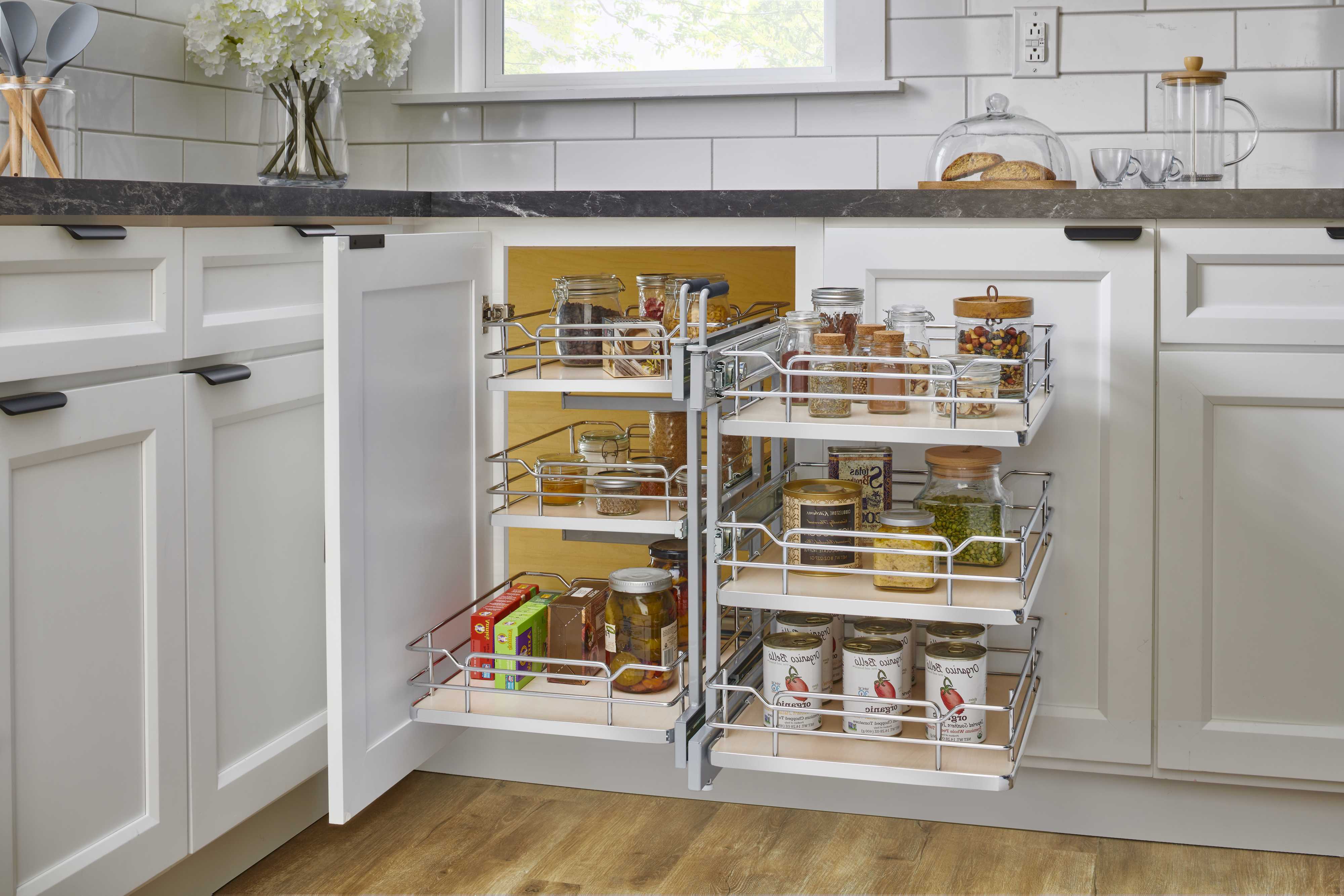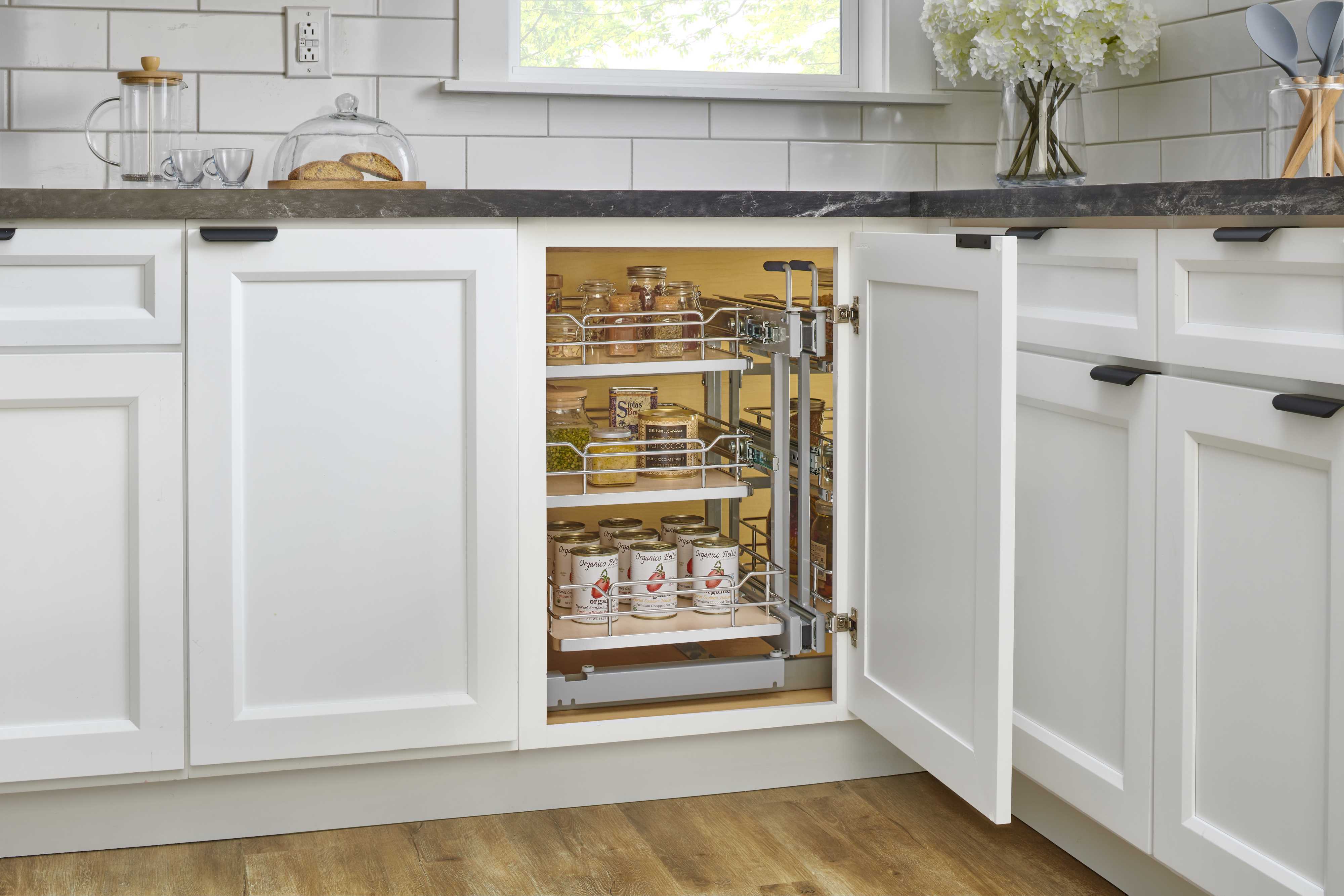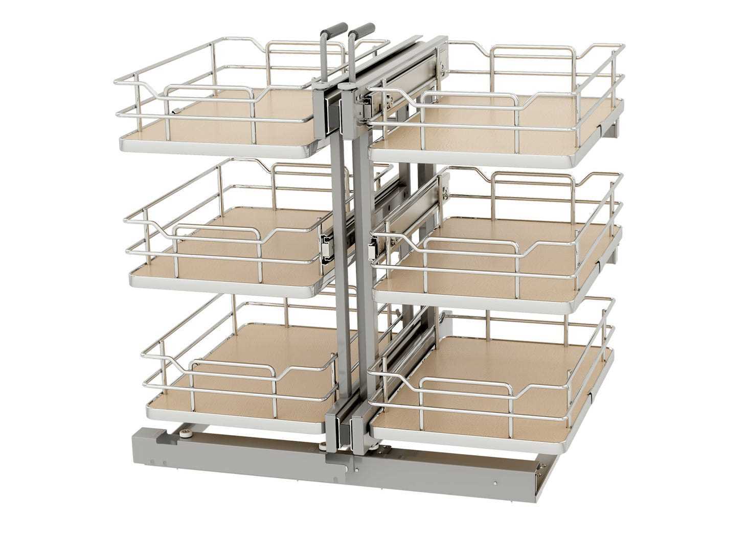 Three-Tier Pullout Solid Bottom Organizer for Blind Corner Cabinets w/ Soft-Close